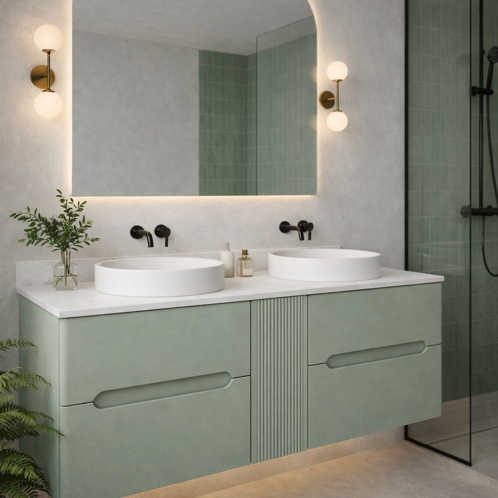 Masca de lavoar Arco 120 este realizată din MDF vopsit cu blat alb din compozit. Are dimensiunea L120 x W46 x H54 cm și poate fi realizată în orice culoare din paletarul RAL și NCS. Personalizabilă la comandă.