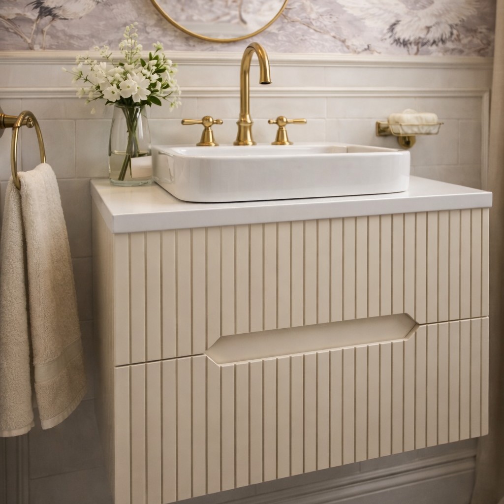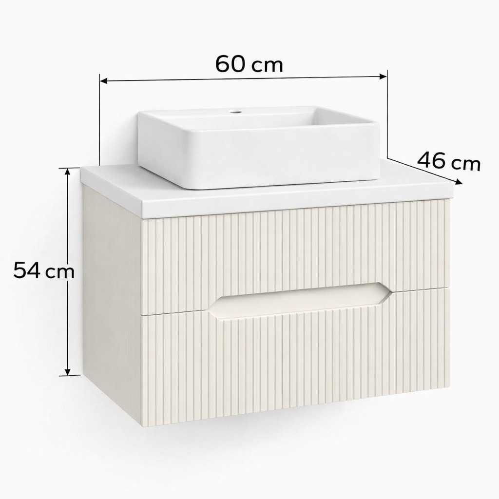 Masca de lavoar Riva 60 este realizată din MDF vopsit cu blat alb din compozit. Are dimensiunea L60 x W46 x H54 cm și poate fi realizată în orice culoare din paletarul RAL și NCS. Personalizabilă la comandă.